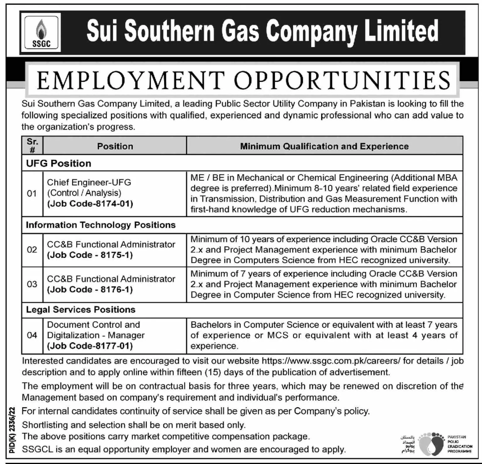 SSGC Jobs 2024 Newspaper Advertisement Below